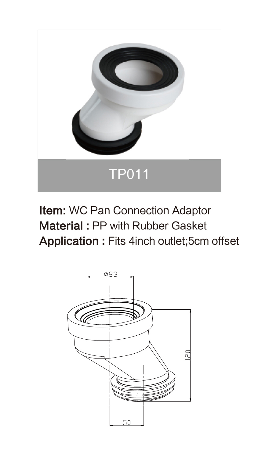TP011 is a flush Pan connector, the Material is HDPE with rubber gasket.